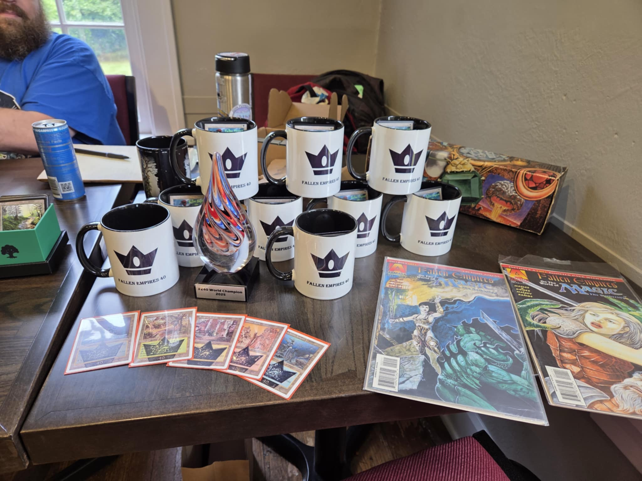 On 8/23/25 we hosted the second “Fallen Empires 40 World Championships”! This was again hosted by Mike Klements + Craig Snook (back by popular demand) at Shuffler’s Den in Willoughby Hills, OH! As the initial “World Champs” event was a hit, it felt only appropriate to keep the FE train going and concentrate the fun! After the FE main event, we hosted a full 93/94 EC tournament as well! (yes, that was a lot of Magic!) Attendees came across state lines with great representation from WV + PA and across OH! 21 players in total were in attendance.