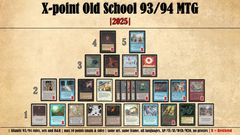 Xpt is a variation of 93/94 OS that has a point limitation to builds. It has gained traction in the past few years, and I honestly felt a bit “late to the party”, but just dove in. I began brewing on merfolk (surprise) but drifted from the idea quickly with the limitations on the 10 point inclusion. At the Elks Lodge OS event at eternal weekend ’25 I brewed around Fallen Angel, and this seemed like a great opportunity to build on that further. My final decklist landed as such: