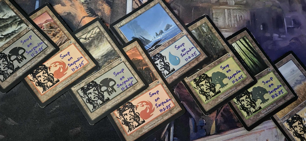 I’ve always been a sucker for quaint and offbeat MtG events. I try to attend many, but make sure to host at least one from the heart each year. Cube has emerged as one of my favorite casual ways that I can share what I love about MtG with those around me without barrier. Previous recent years have included: Lorwyn, Onslaught Block, 93/95, ante-cube, and Vanguard events. I was happy to add “Soup on Sarpadia” to the list for 2025.