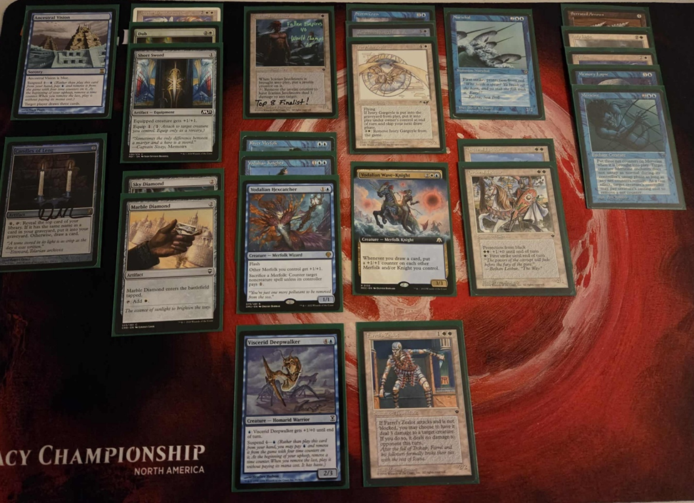 2-1 (5-4) – U/W aggro. This deck really made use of the enchant creatures/equipment. Plus, Wave Knights and Ancestral Vision was enough to scare anyone away. It had some lands in it too.