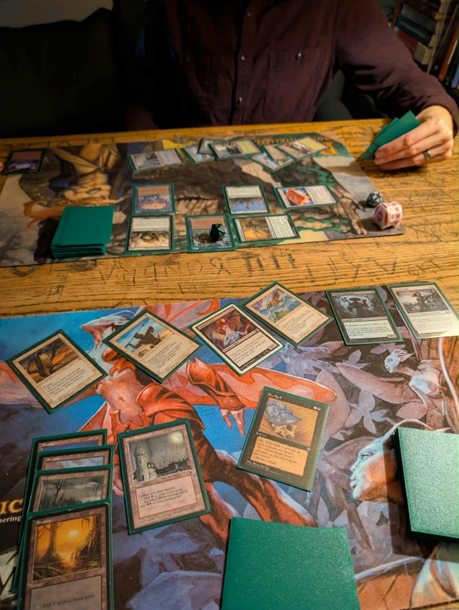 The “Sarpadia Remastered” cube is a personal, immersive design and somewhat of a favorite amongst my facets of MtG. I’m thankful for the continued interest in it! (Maybe someday I’ll write more about it). In short, it features Fallen Empires as the base set, and themes mainly from the fringe continents of early Dominaria. It showcases cards from 1993 to present. It is a casual product of years of FE40 online league results with fluid updates based on previous reps, and an unhealthy personal dive into the deep lore of early Magic. This is truly a unique environment featuring unlikely heroes –all cubes are best shared on the kitchen table with beer and 7 others… or in this case a soup cook-off!!