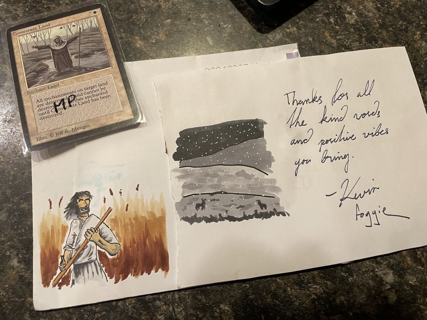They had the classic cool swag such as signed cards, custom playmats, 3D printed d20 dice, you know - the usual stuff. I also picked up a fun souvenir copy of Diamond Valley that has nothing to do with anything, but I still have this card and think about my trip every time I see it.